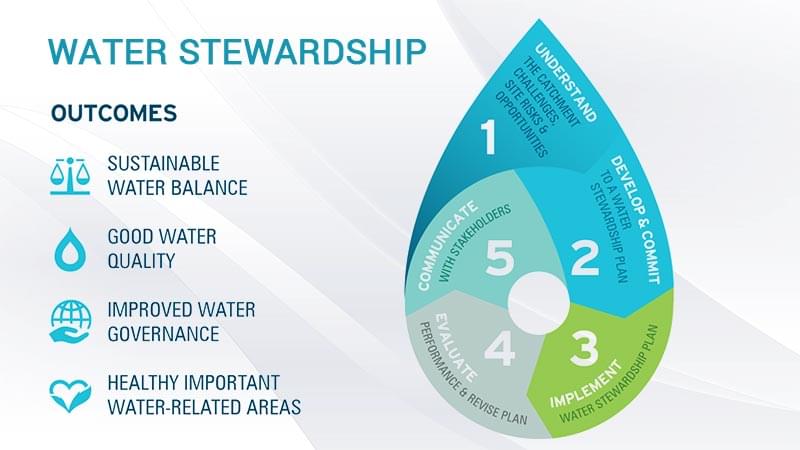 Water stewardship initiatives provide companies with the opportunity of long-term sustainable resource availability and reduced risk to the business. It gives the organization a chance to reduce a collective impact by strengthening their management of direct and indirect resource consumption and at the same time enhance the image of the company as thoughtful and visionary leaders.